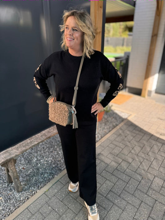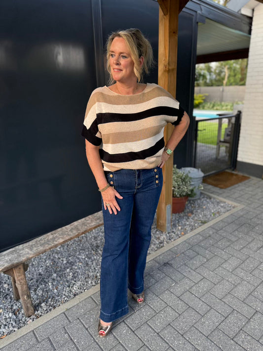 Shirt fijn gebreid zwart beige wit