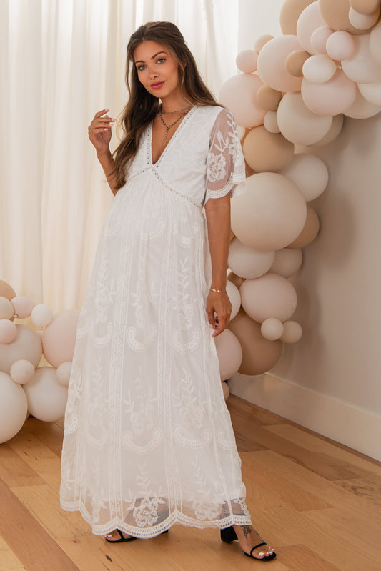 Wit kanten mesh overlay Maxi-Jurk