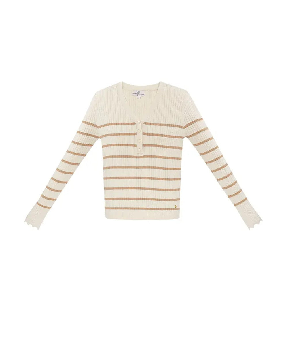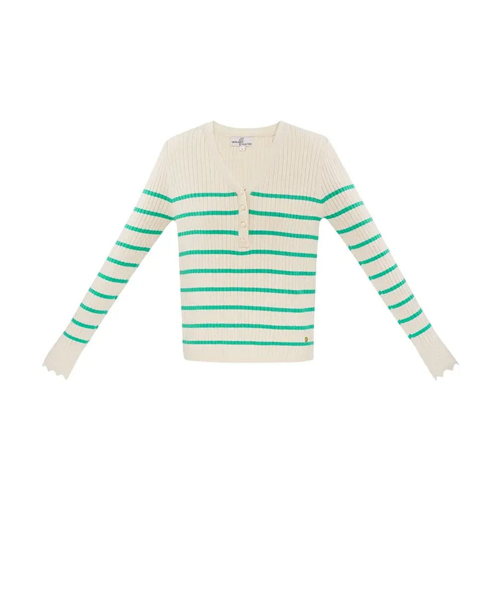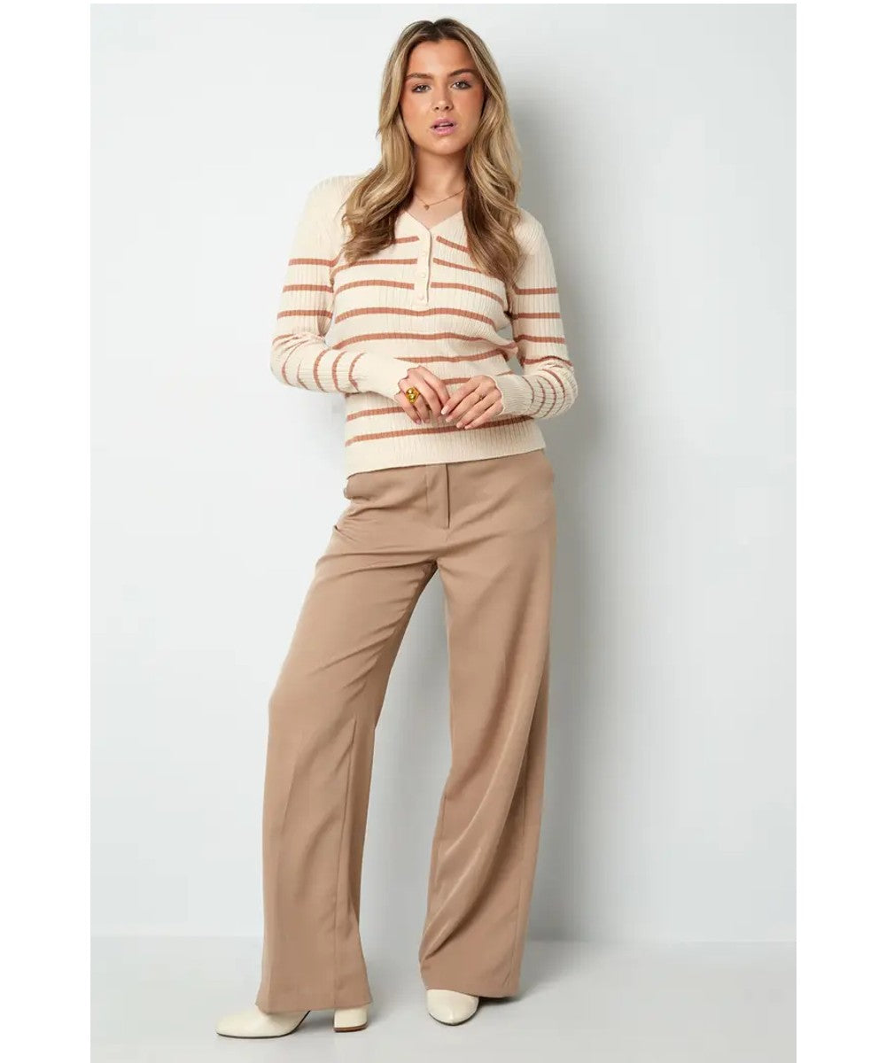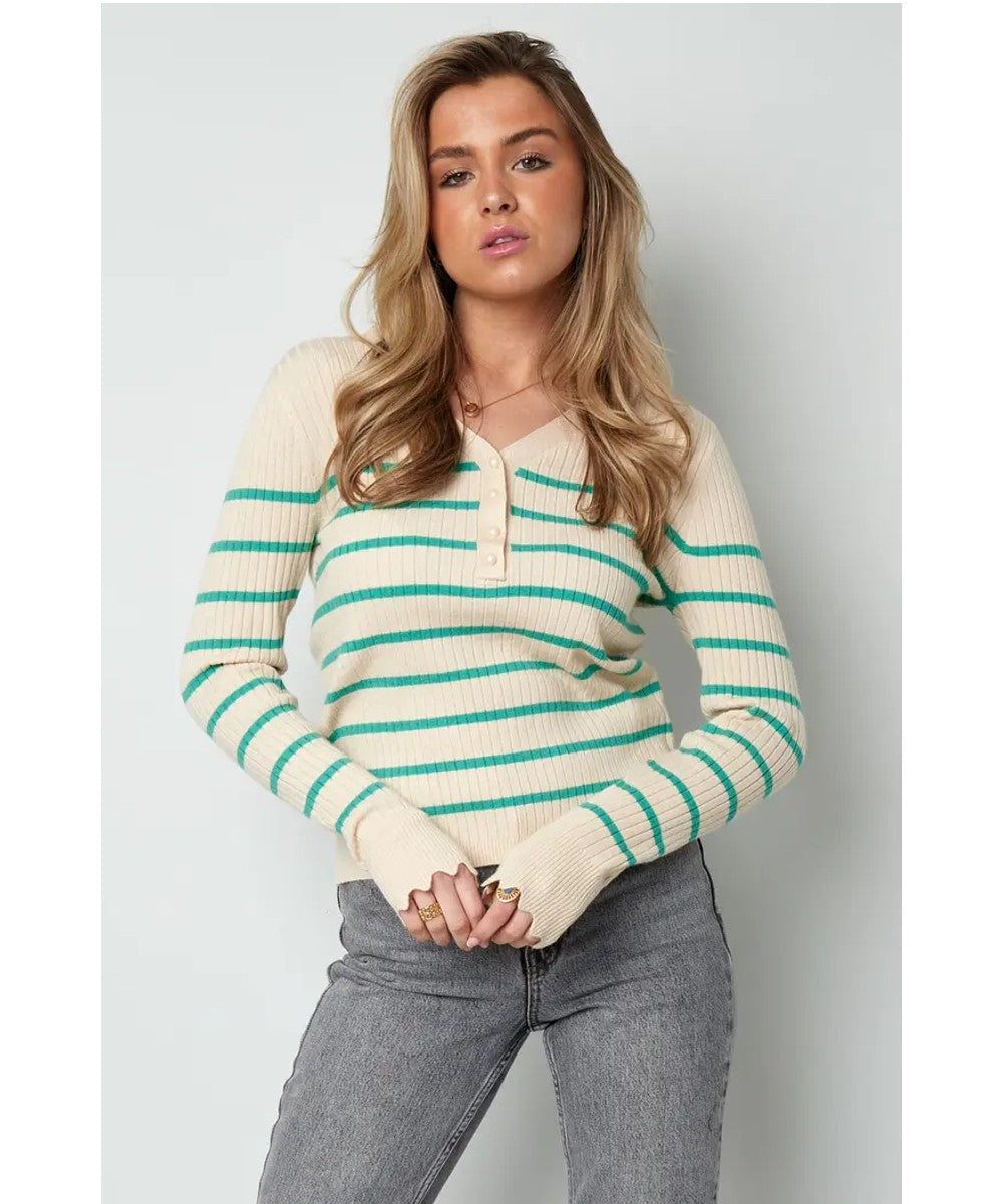 Voeg de dun gebreide trui met strepen in bruin en groen toe aan je garderobe en geniet van de perfecte mix van stijl en comfort. Bestel nu en maak je winterlook compleet!