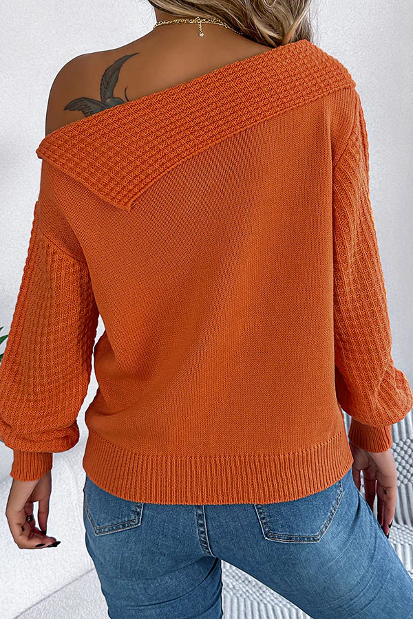 Gebreide POLLY trui met lange mouwen en één schouder in effen kleur