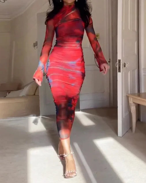 Verhoog je stijl en stap in een wereld van luxe en verfijning met onze dames maxi-jurk. De lange mouwen met uitsparingen combineren perfect kantoormode met straatchique. Voel je als een beroemdheid die de rode loper betreedt—elke enkele dag.
