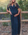 Donker blauw kanten mesh overlay Maxi-Jurk