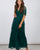 Een v-halslijn en een haak- en verborgen ritssluiting aan de achterkant.
