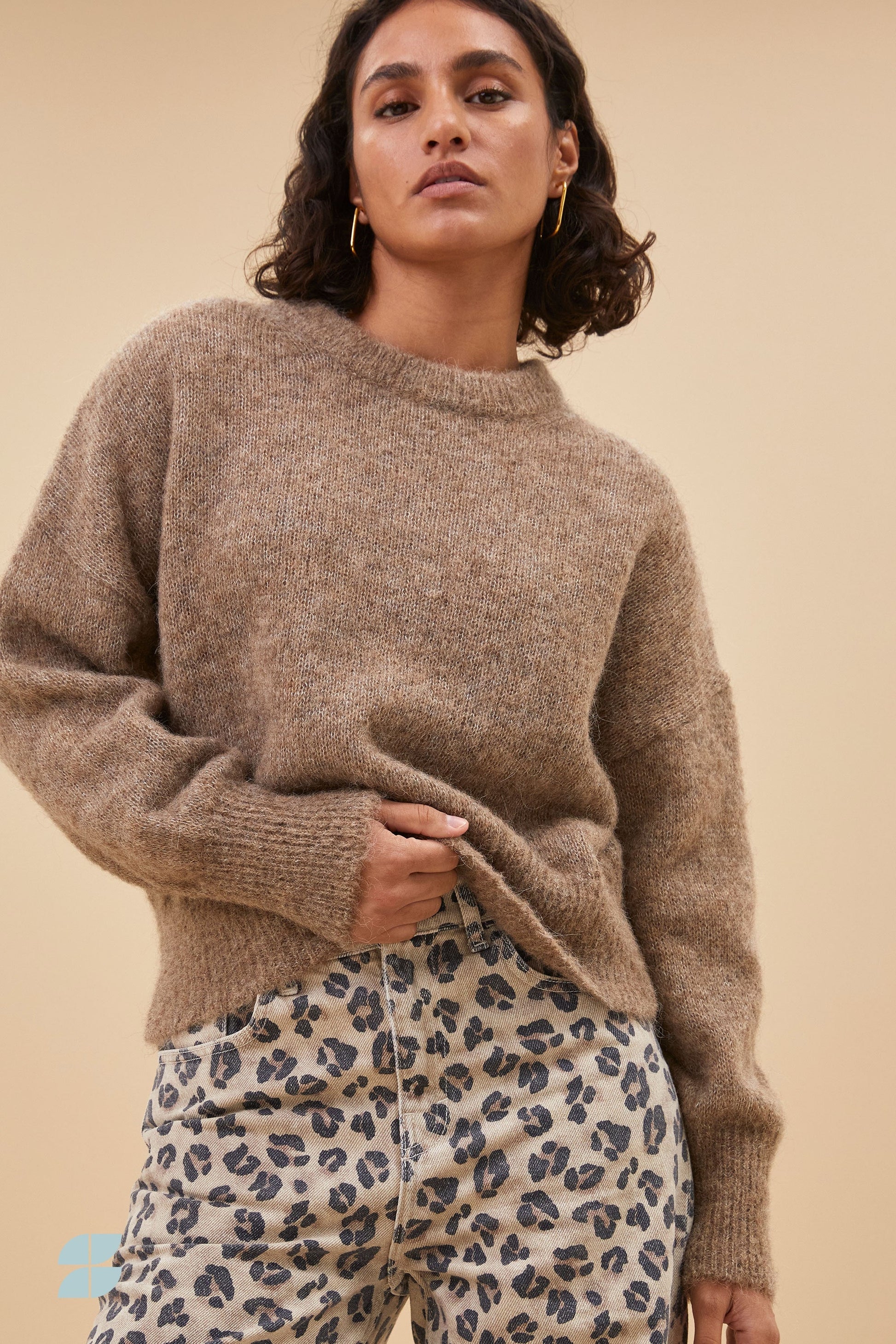 De zachte, gebreide textuur voelt heerlijk aan op de huid en heeft een ademend vermogen dat je warm houdt zonder in te boeten op lichtheid. De verlaagde schoudernaden zorgen voor een relaxte fit, terwijl de subtiele ribboorden aan de onderkant, hals en mouwen de trui een verfijnde afwerking geven.